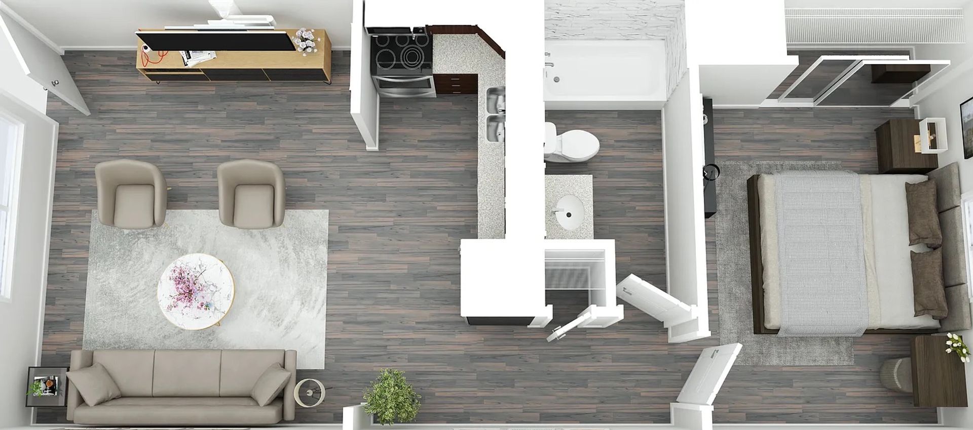 1 bedroom apartments in downtown Bloomington! Located just three blocks from the east side of campus, and a 8 min walk the Kelley School of Business and a 10 minute walk to the Mauer School of Law. Solaris Apartments offer easy access to downtown restaurants, bars, shopping and more. Upgraded finishes include granite countertops, stainless appliances, tile showers, luxury wood plank flooring, nickel plated fixtures new windows . Kitchen includes microwave, range, fridge, and dishwasher. Covered parking, with solar powered common area LED lighting and EV (electric vehicle) charging port. Also, on-site laundry and wifi