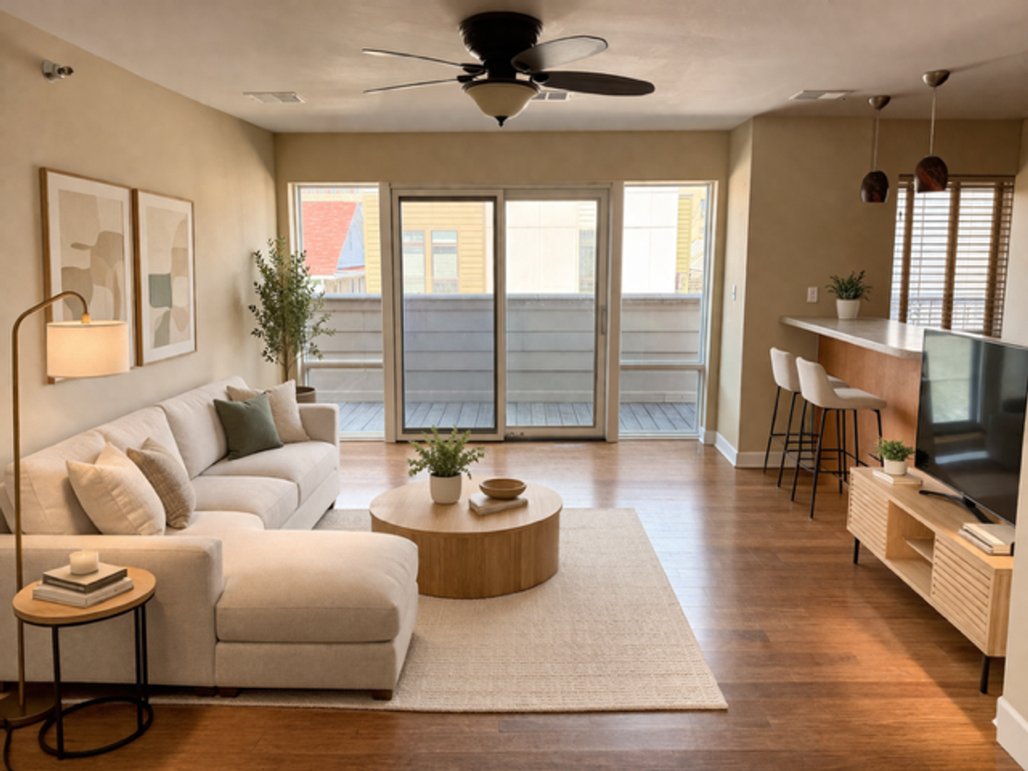 • Wood plank flooring in main living spaces