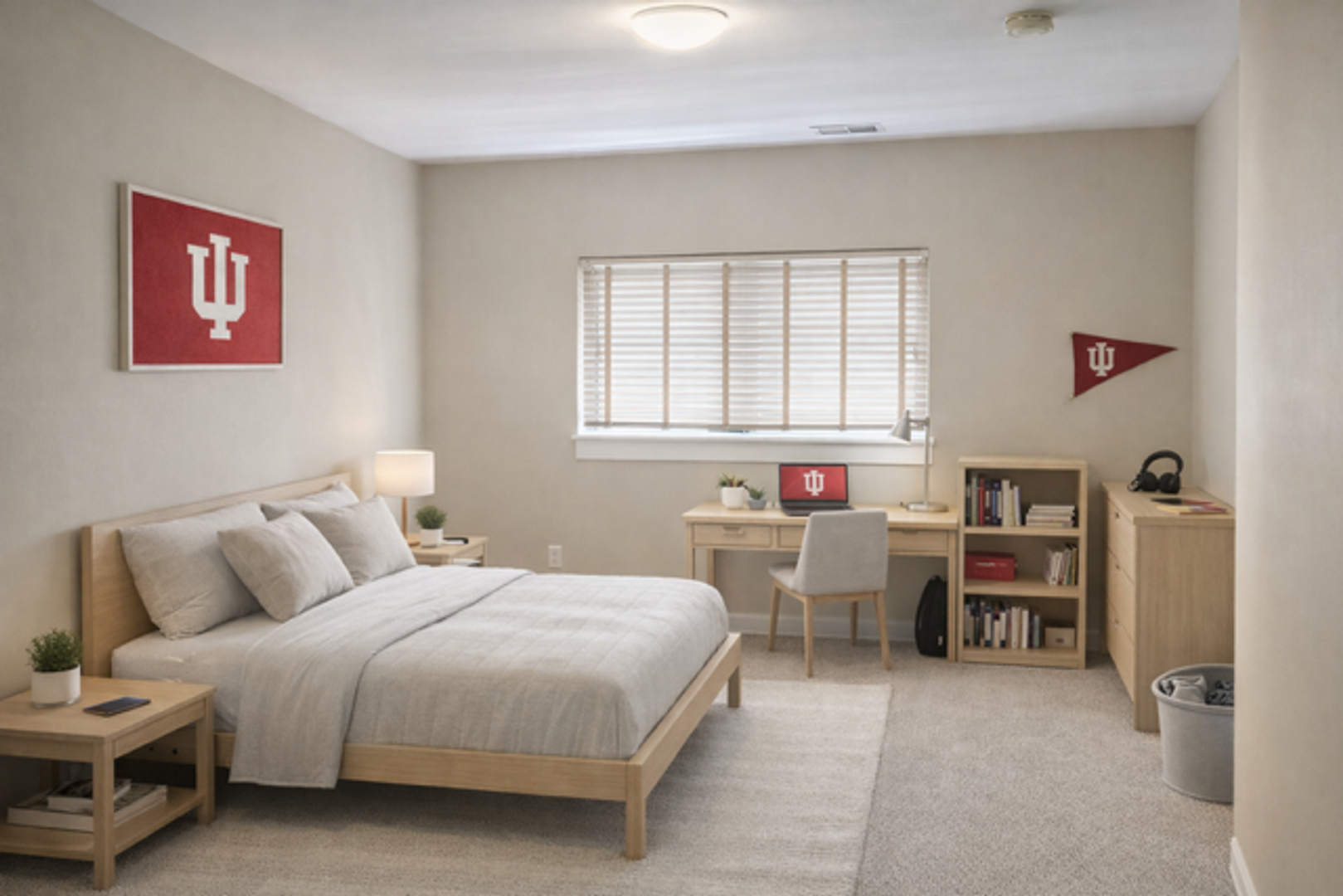 Each apartment features large bedrooms, an open living space, and a private balcony overlooking Kirkwood Avenue, giving residents a front-row view of the energy and atmosphere of Bloomington’s most popular street.